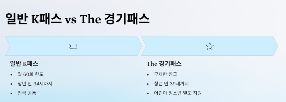 | 항목 | 일반 K패스 (전국 공통) | The 경기패스 (경기도민) | 핵심 차이점 및 인사이트 |