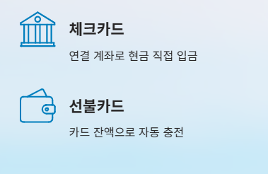 - 체크카드 → 계좌 현금 입금 (즉각적인 현금 확보)