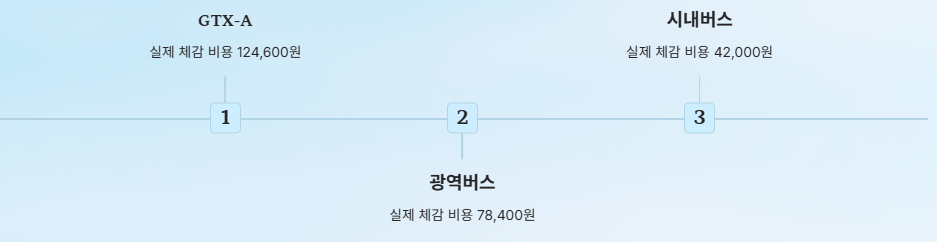GTX 이용자는 월 40회만 이용해도 약 5만 원 이상을 현금으로 돌려받습니다. 이는 웬만한 신용카드 통신사 할인이나 주유 할인보다 훨씬 큰 혜택입니다.