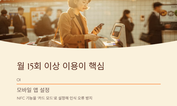 - 실전 적용 팁 1: 모바일 티머니 앱을 사용할 경우, NFC 기능을 '카드 모드'로 설정해야 인식 오류를 줄일 수 있습니다.