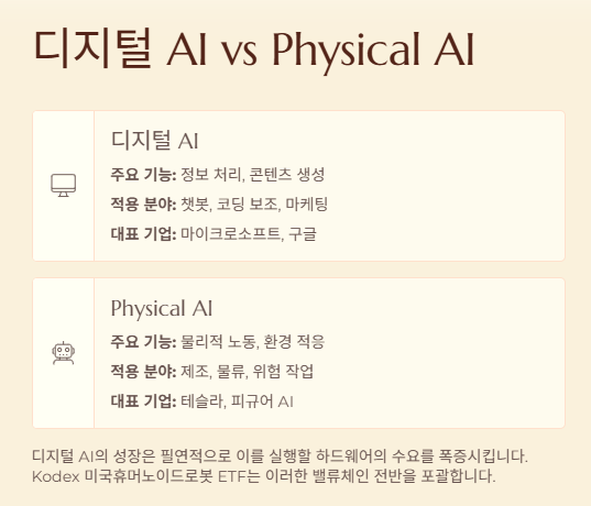 | 대표 기업 | 마이크로소프트, 구글 | 테슬라, 피규어 AI, 보스턴 다이내믹스 | 시장 지배력 원천 |
