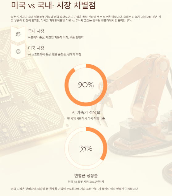 - ✅ 글로벌 AI 반도체 점유율: 미국 기업 90% 이상 (로봇 두뇌의 핵심)