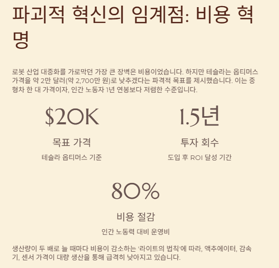 * 목표 가격: $20,000 (테슬라 옵티머스 기준)
