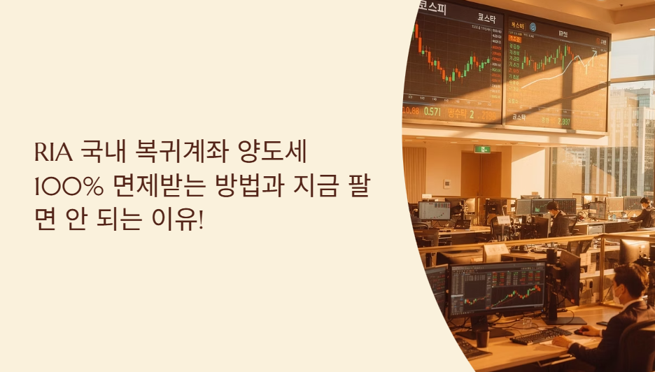 RIA 국내 복귀계좌 양도세 100% 면제받는 방법과 지금 팔면 안 되는 이유!