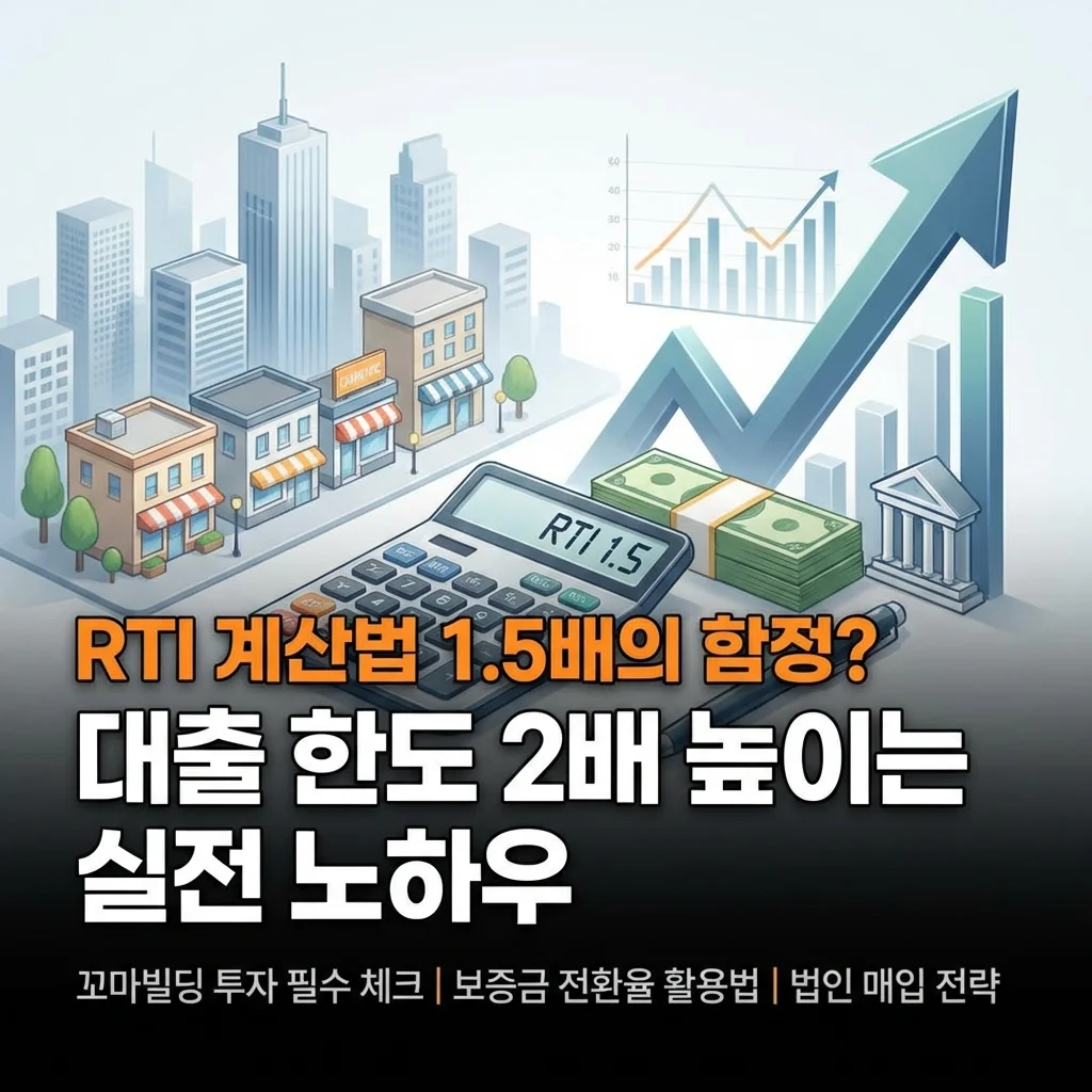 꼬마빌딩 투자의 성패는 단순한 임대수익률이 아닌, 금융권의 냉정한 잣대인 'RTI(임대업이자상환비율)'를 얼마나 정교하게 관리하느냐에 달려 있습니다. 본 가이드에서는 시중의 단편적인 계산법을 넘어, 보증금 전환율의 실질적 영향력과 강남권 수익률 역전 현상에 대응하는 자본 이득(Capital Gain) 전략, 그리고 법인 매입 시의 재무적 이점까지 입체적으로 분석했습니다.