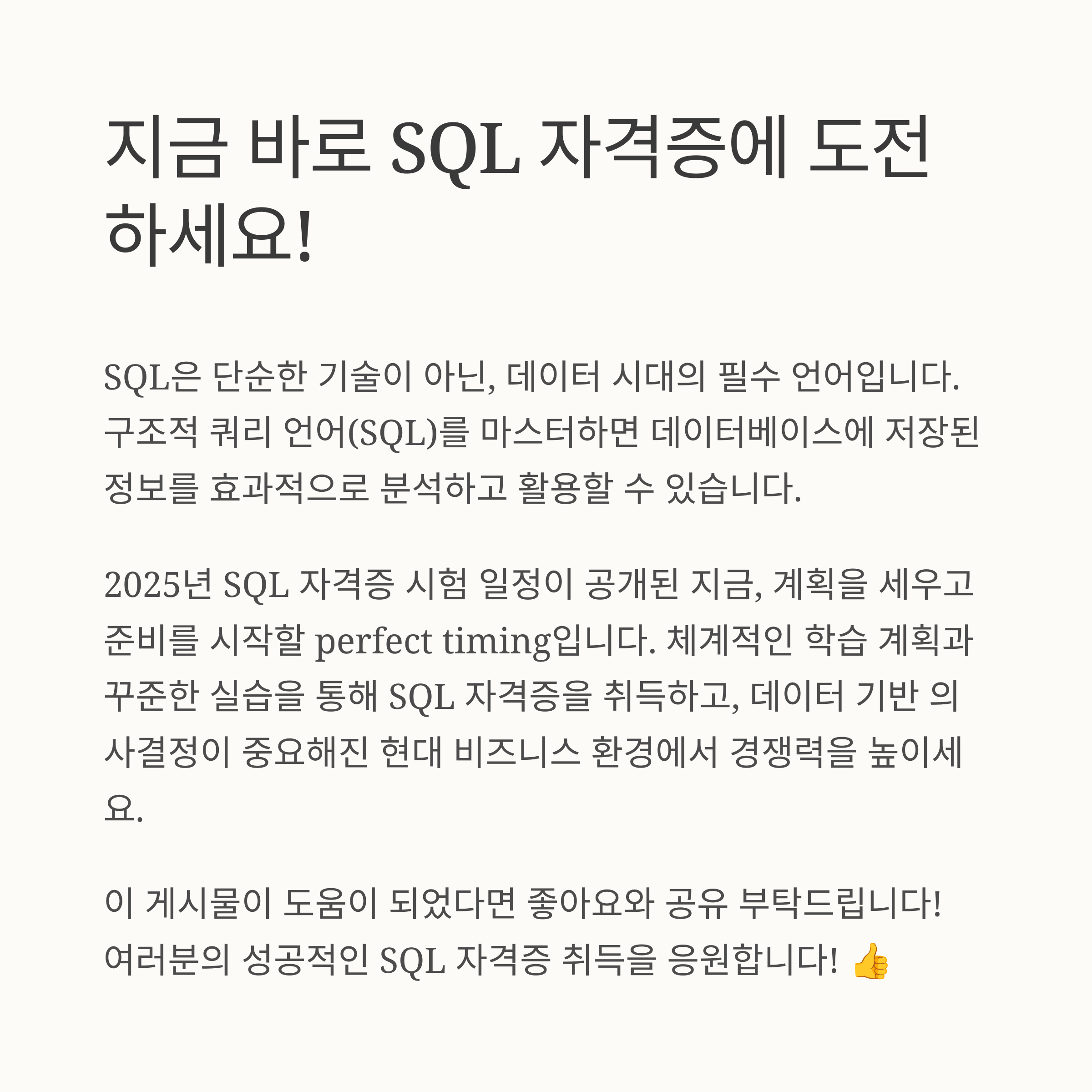 지금 바로 SQL 자격증에 도전하세요!