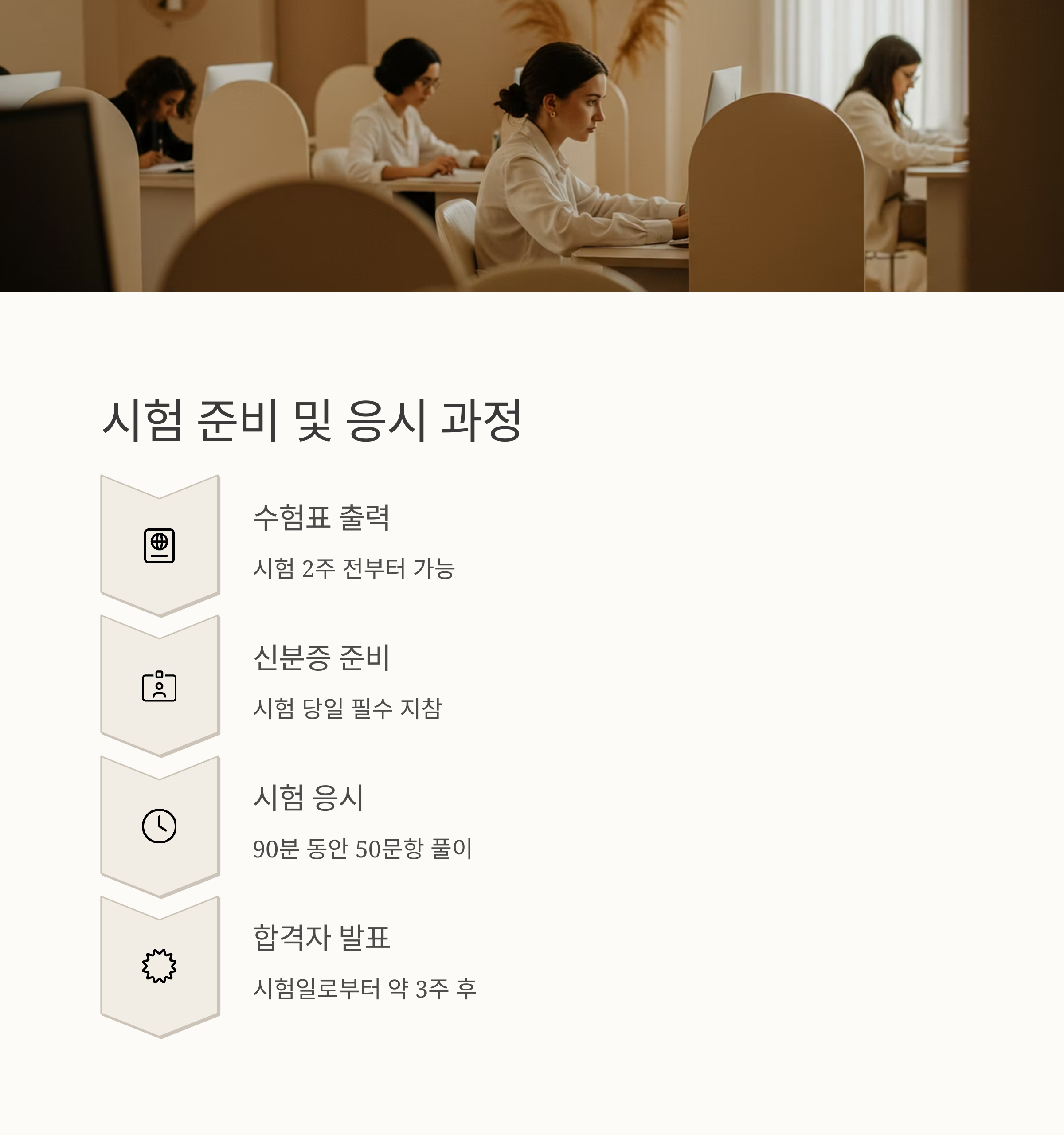 - 시험 당일 신분증과 수험표 지참